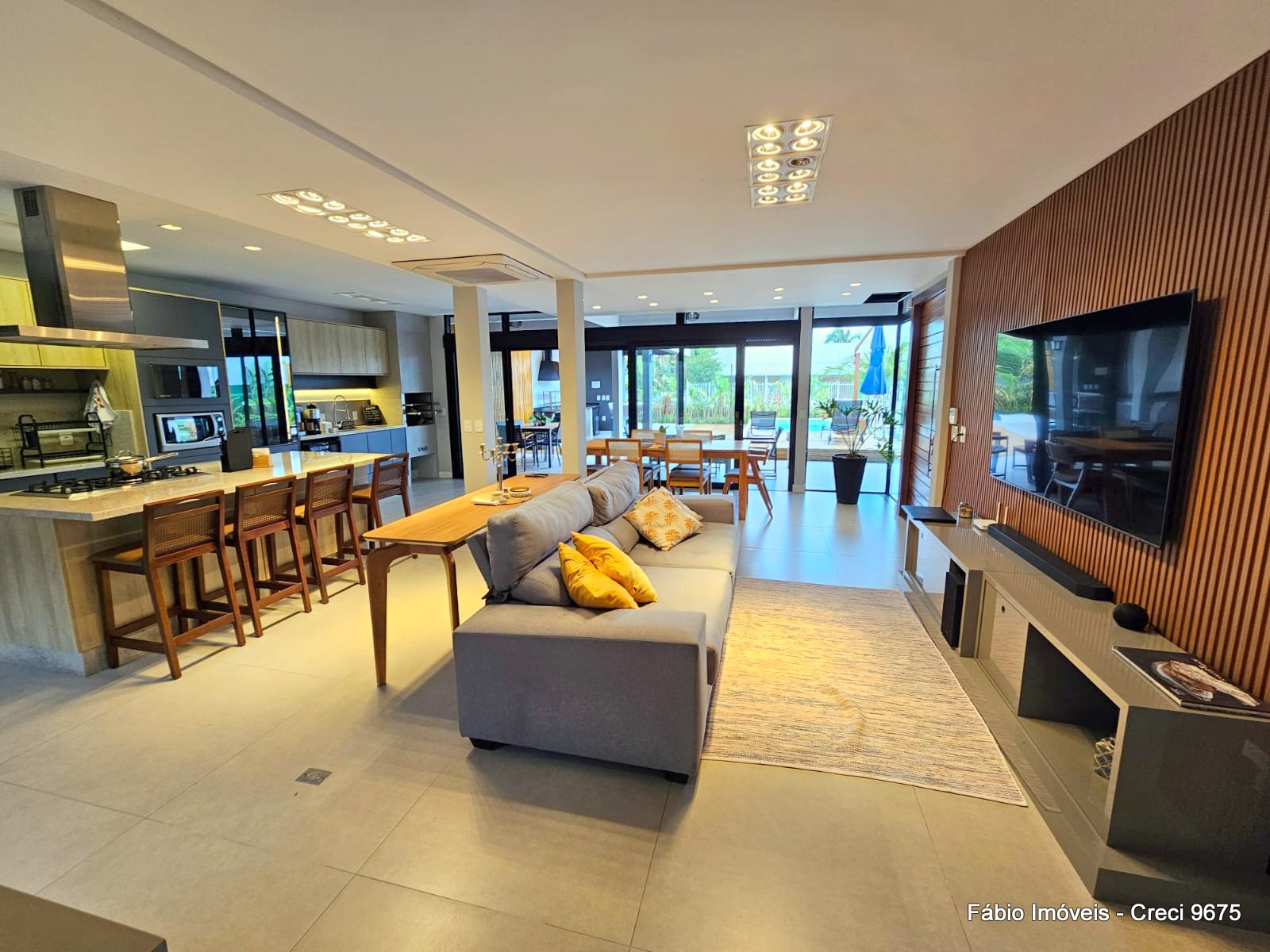 O imóvel conta com sala e cozinha em conceito americano, ambientes integrados e modernos, área gourmet, piscina aquecida e ar-condicionado central, proporcionando bem-estar em qualquer época do ano.
